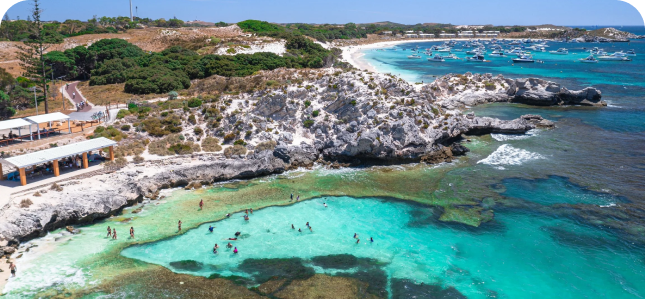 Famous for its laid back atmosphere and beautiful beaches, Rottnest Island lies just 18 kilometres offshore from Perth surrounded by the sparkling Indian Ocean. This is where the locals go to swim, surf, snorkel, fish and relax.